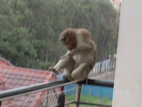 இதனிடையே குரங்கு எங்கள் பிளாட்டின் பால்கனிக்கு வந்து அட்டகாசம் செய்ய ஆரம்பித்தது. எல்லாவற்றையும் விடப் பெரிய கொடுமை என்னவென்றால், எங்கள் வீட்டில் வேலை செய்யும் அம்மா சொன்னதுதான். "உங்க வீடல் இப்ப எக்ஸ்ட்ரா மெம்பெர் வந்துர்க்காங்க. சம்பளம் ஜாஸ்தியா வேணும்".